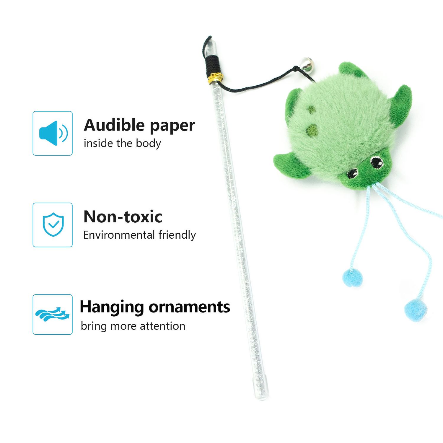 Premium Plush Material: Our Cat Teaser is crafted with high-quality plush material, ensuring a soft and gentle touch for your cat's comfort during playtime.